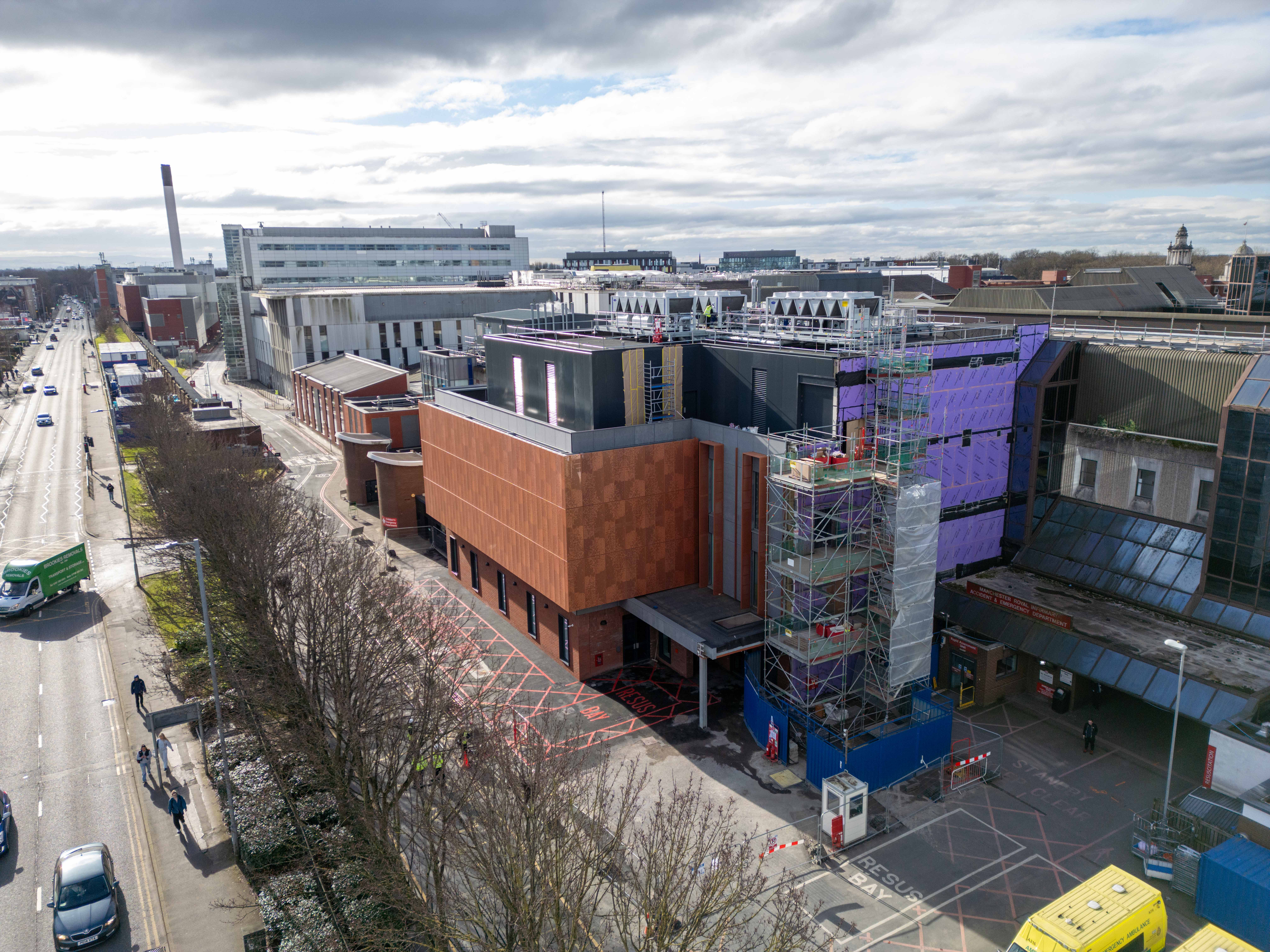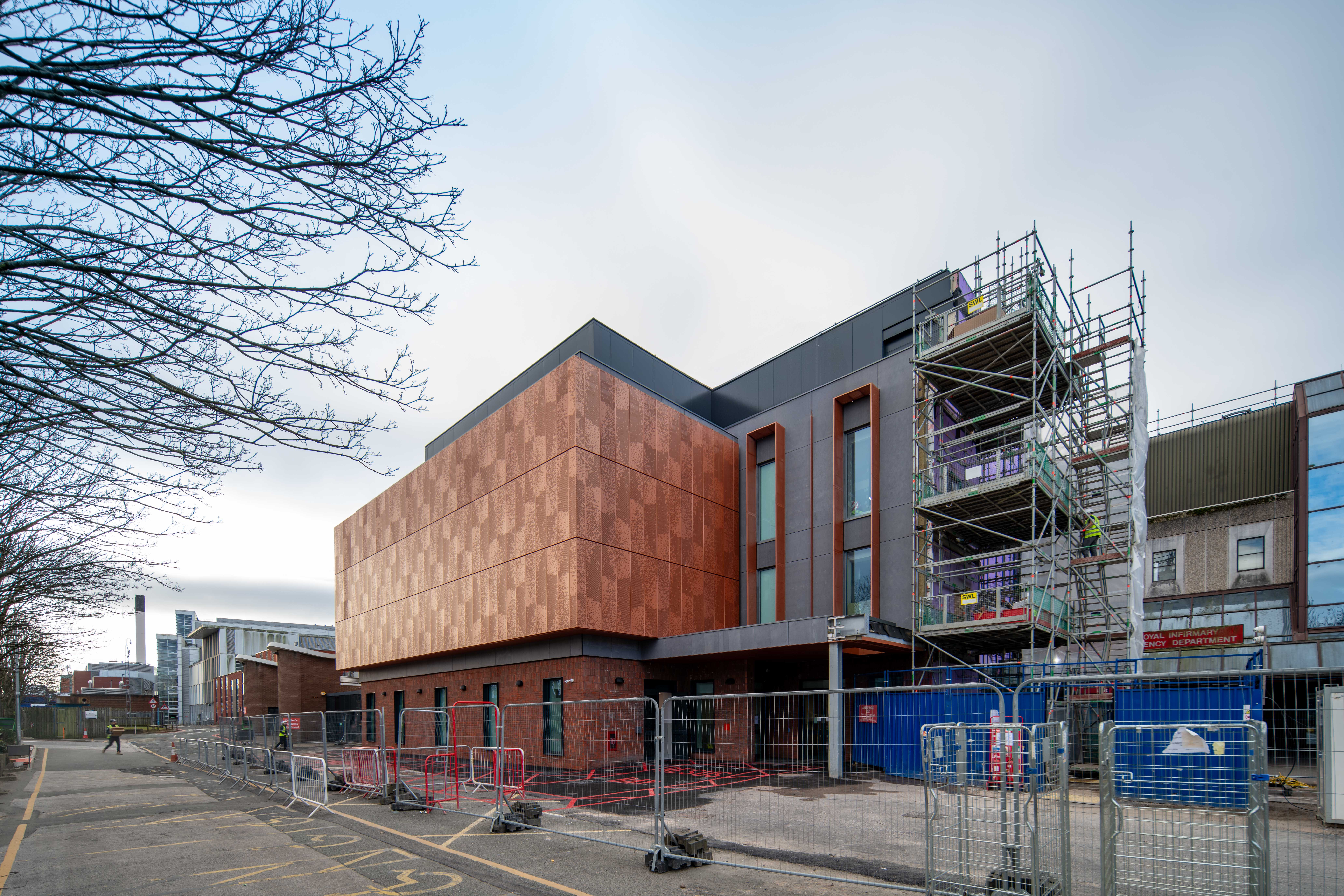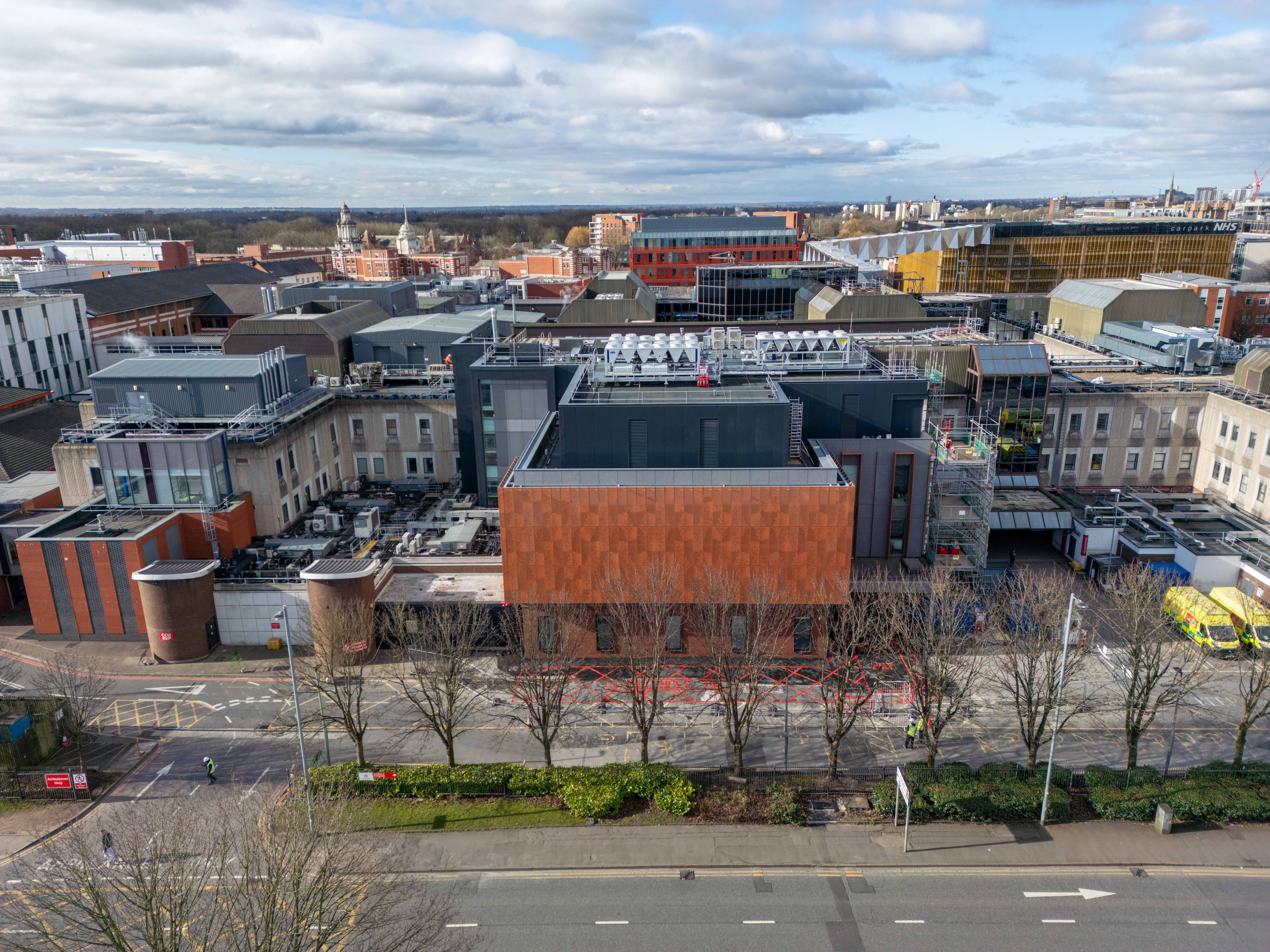 Phased civil and structural delivery within a live Major Trauma Centre; coordination of temporary works and access to maintain blue-light routes; adaptable structural solutions integrated with existing estate; resilient drainage and substructure design supporting long-term emergency care capacity.