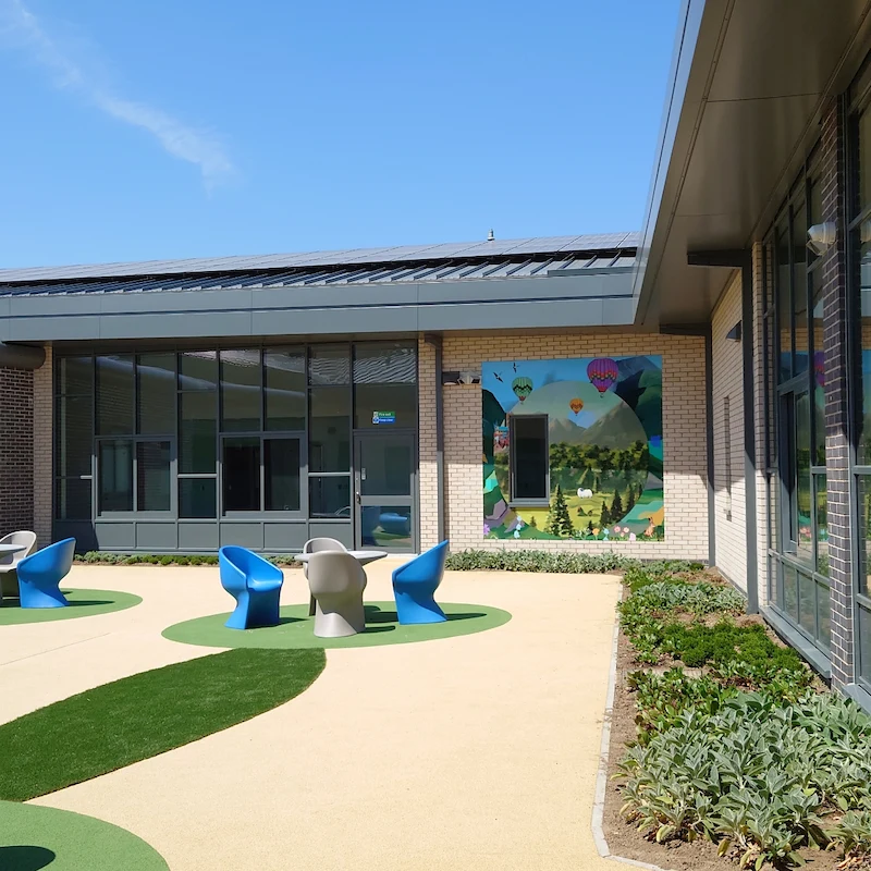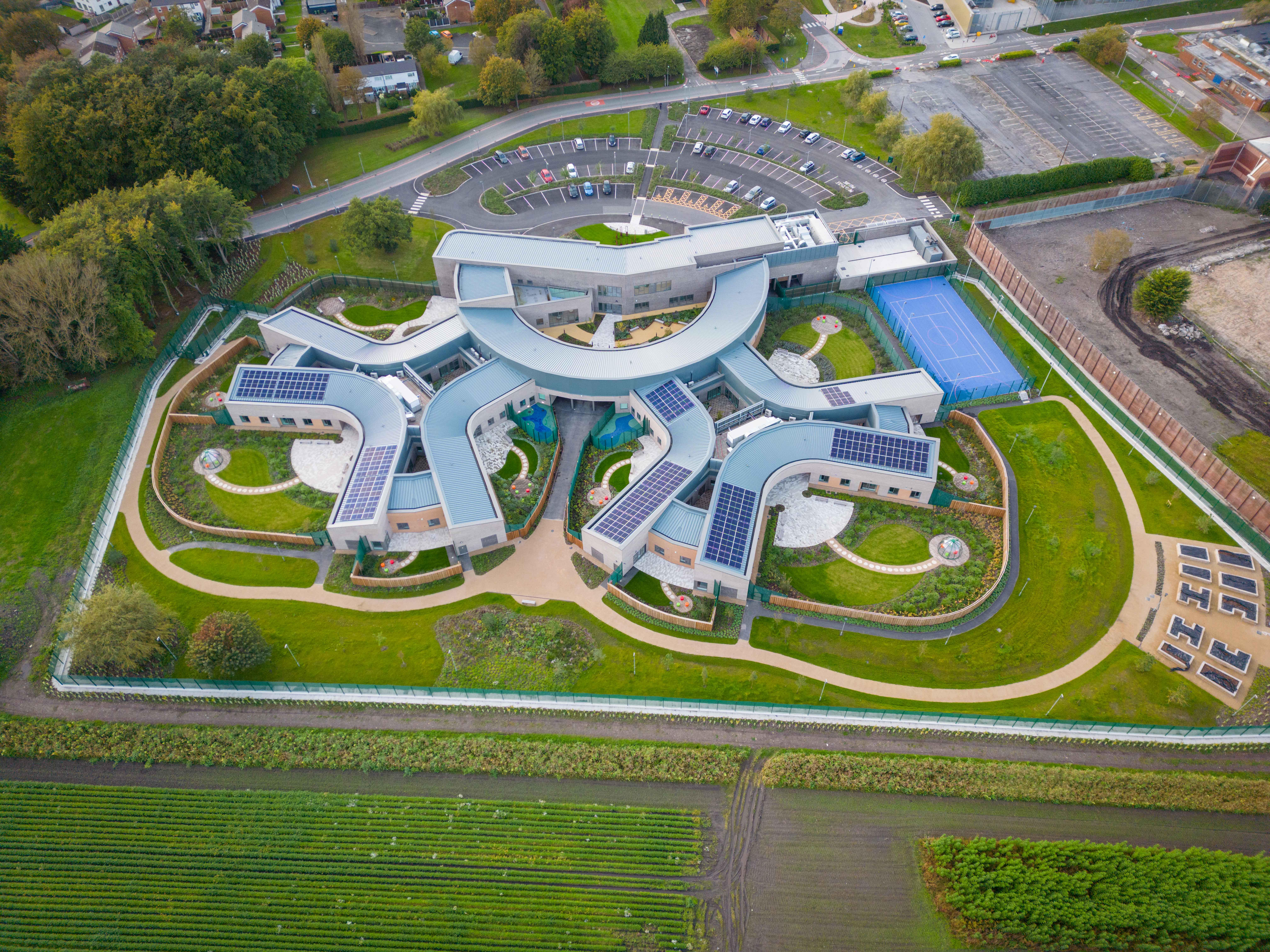 Optimised earthworks and site levels; precast retaining wall systems; landscape-integrated drainage and SuDS; buildable substructure solutions supporting therapeutic outdoor spaces and future adaptability.