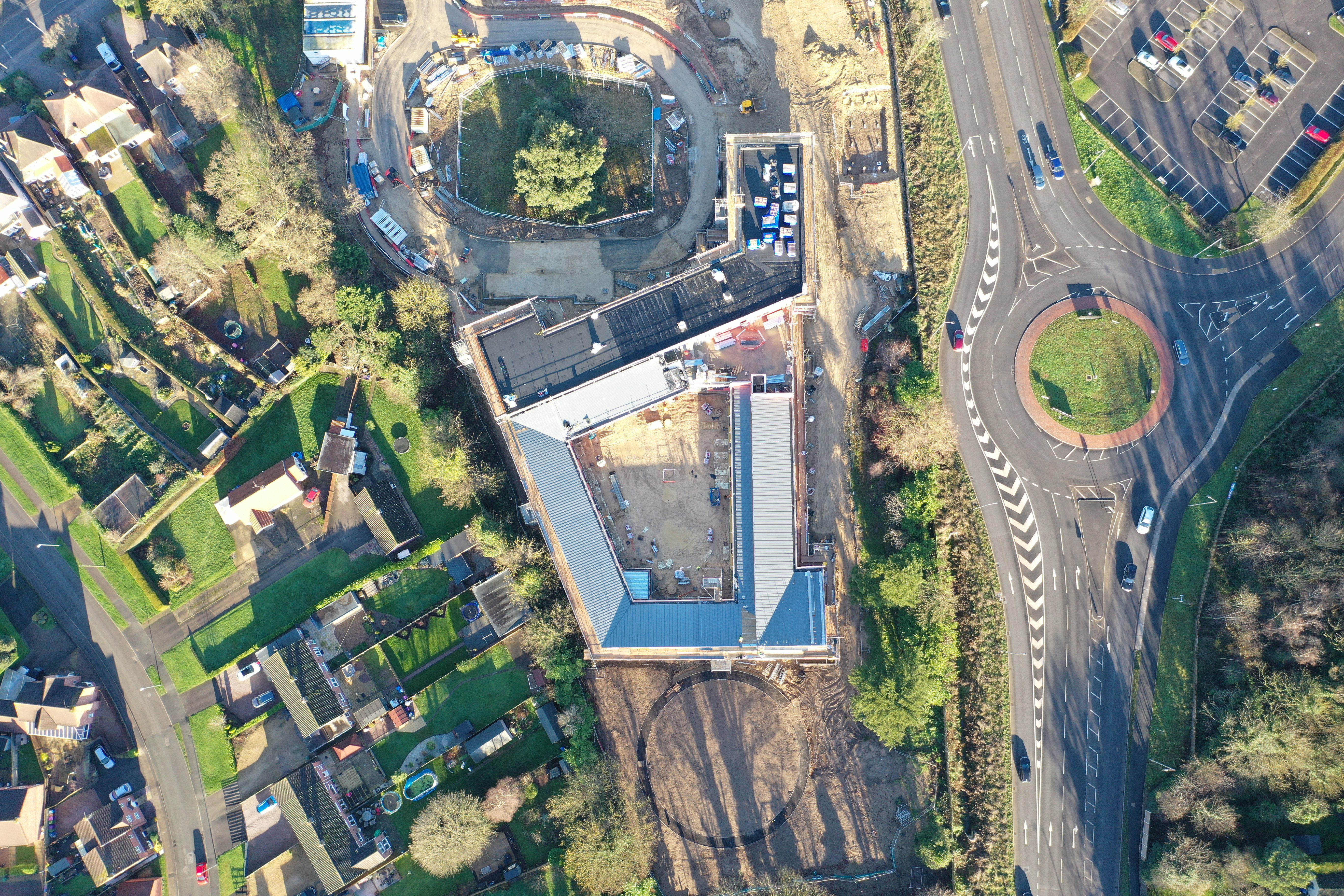 Phased civil and structural delivery within a live emergency department; detailed survey-led adaptation of existing structures; coordinated drainage diversions maintaining clinical continuity; protection of blue-light access and pedestrian routes throughout construction.
