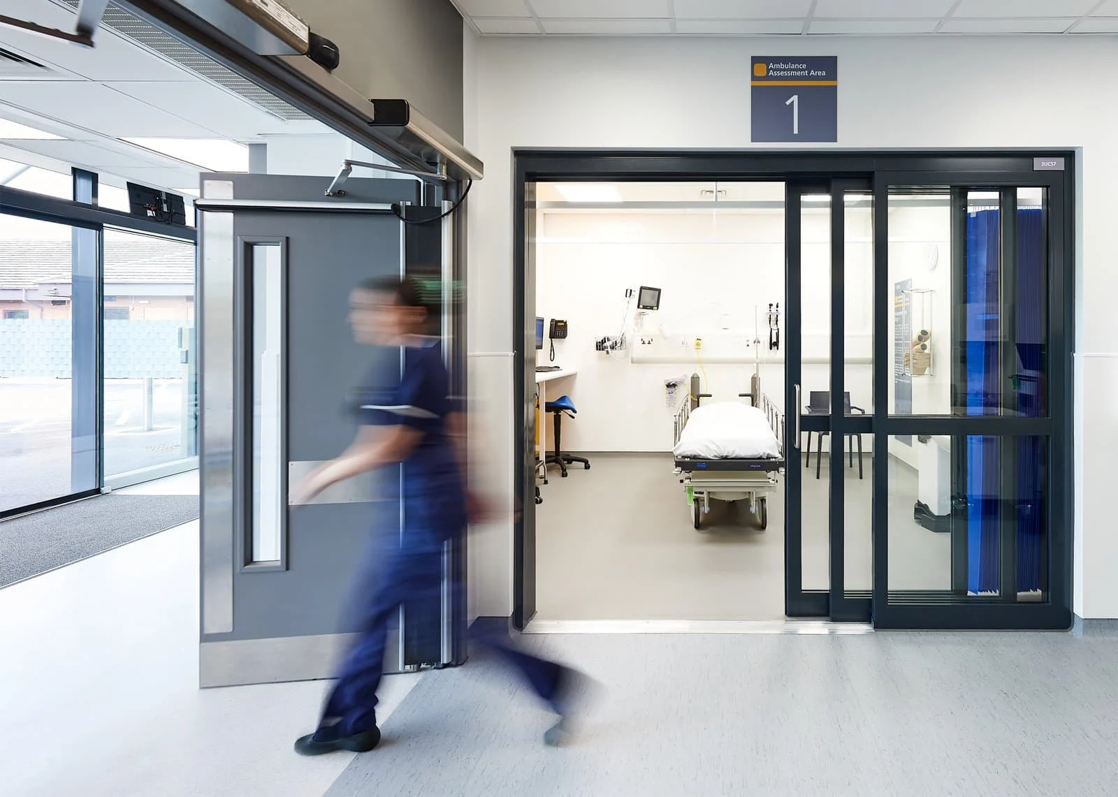 The scheme comprises a two-storey extension to the existing Appleton Building. The ground floor provides dedicated patient-facing accommodation, including assessment areas, triage, ambulatory care, hot clinics and GP streaming facilities, supporting a range of alternative pathways to care and reducing pressure on the main Emergency Department. The first floor accommodates administrative, equipment and staff welfare spaces, releasing valuable ground floor space within the existing department for additional clinical use.